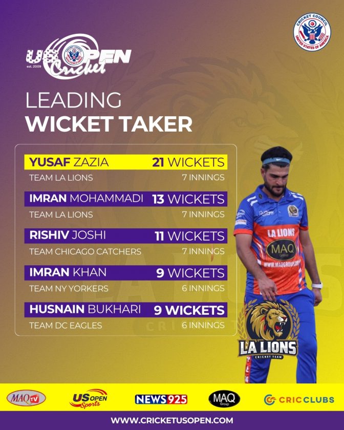 • Most Wickets: Yusaf Zazia (LA Lions) – 21 wickets