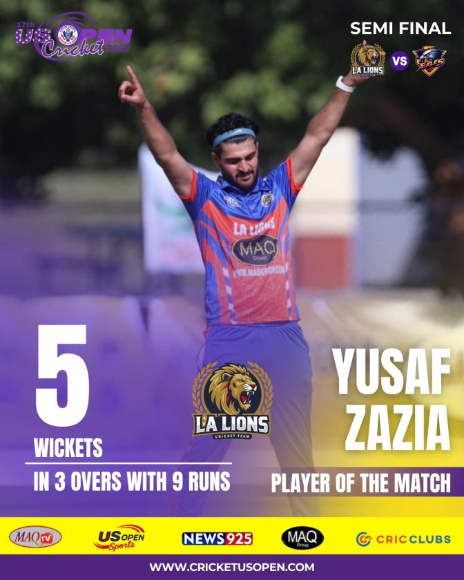 LA Lions delivered one of the most dominant performances in US OPEN Premier Cricket League history, crushing DC Eagles by a massive 150 runs in Semi Final 1.
